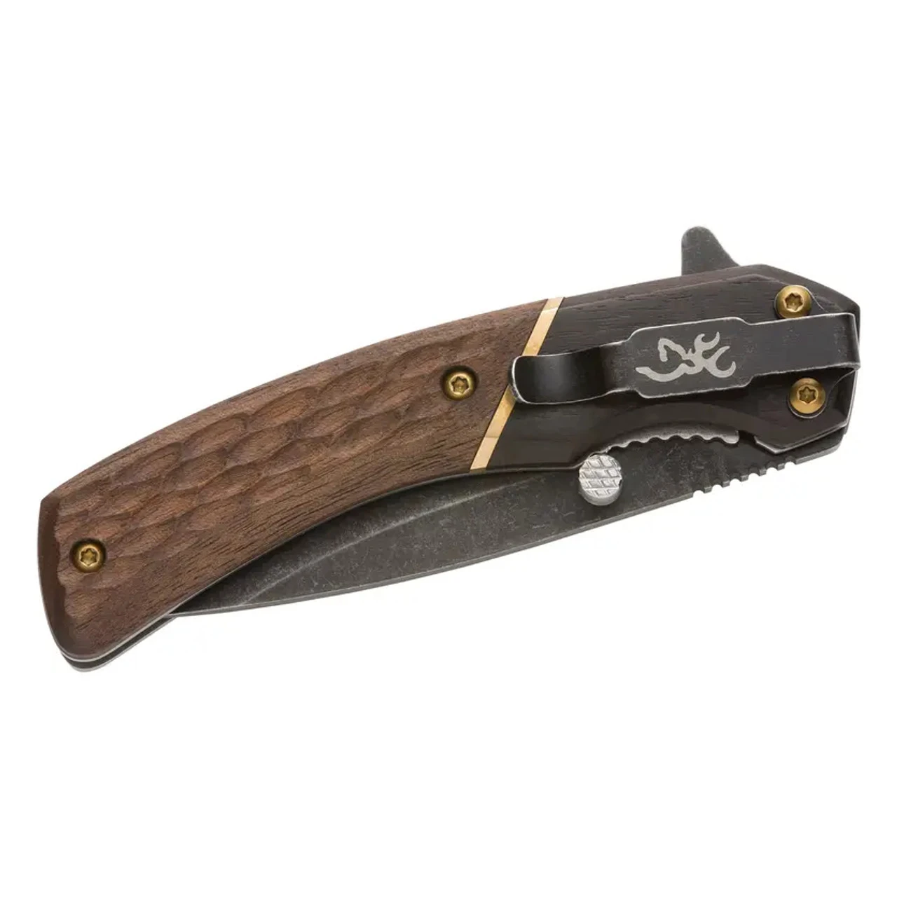 Is this the perfect hunting knife? It just might be. Our new Hunter Series knives are long on quality and performance. They are a fusion of modern design with classic materials like 440C stainless steel blades, traditional polished hardwood handles with jigged patterns and polished brass accents. This small size with drop point blade goes easily in your pocket down low or clipped in with the pocket clip.Â