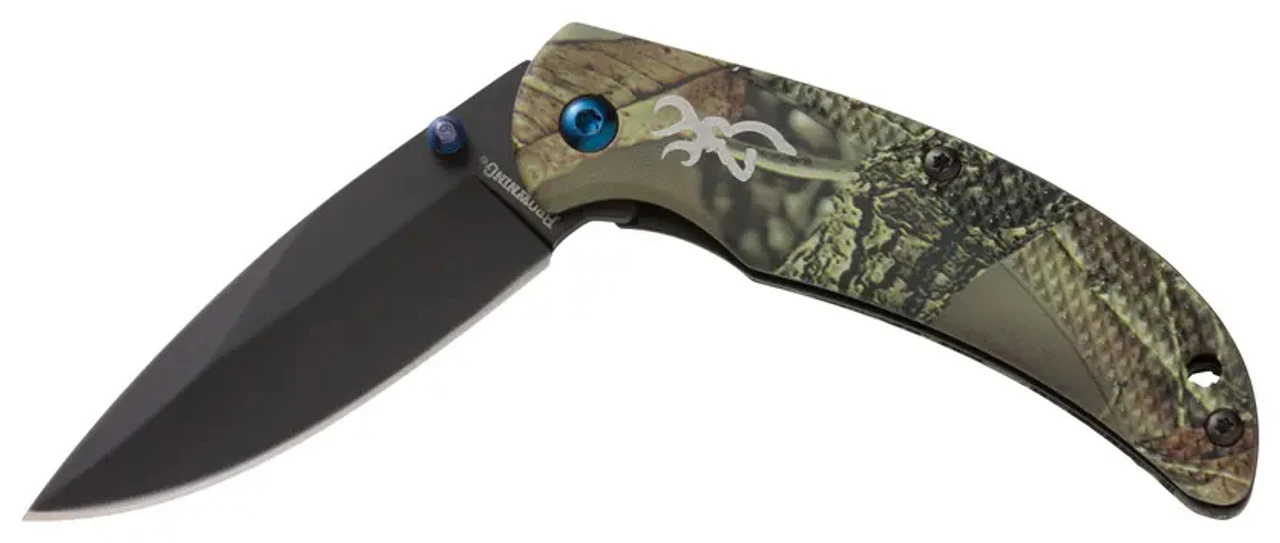- 7Cr17MoV stainless steel slender drop point blade with black finish