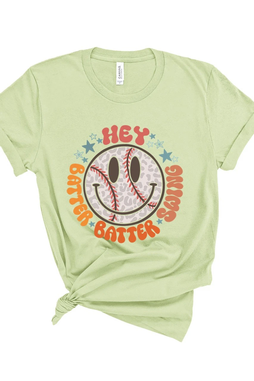 HEY BATTER BATTER SWING,SMILEY FACE BASEBALL UNISEX SHORT SLEEVE