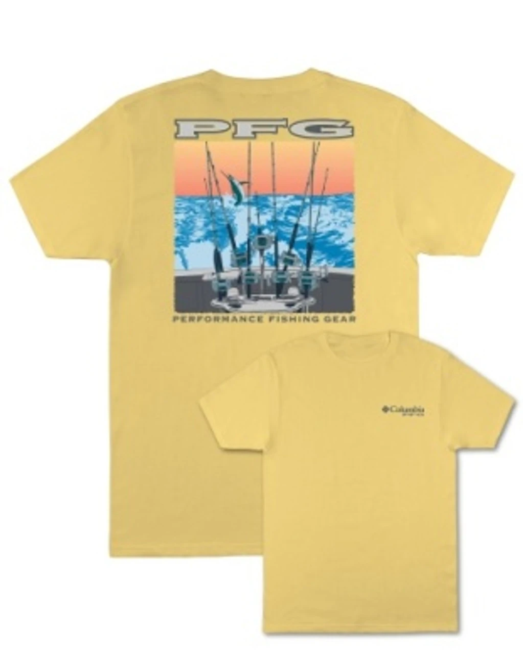 Keep each adventure going strong with this PFG T-shirt by Columbia. This lightweight short sleeve tee is perfect for a casual day out and features a stylish design and flexible crew neckline for all-day comfort.