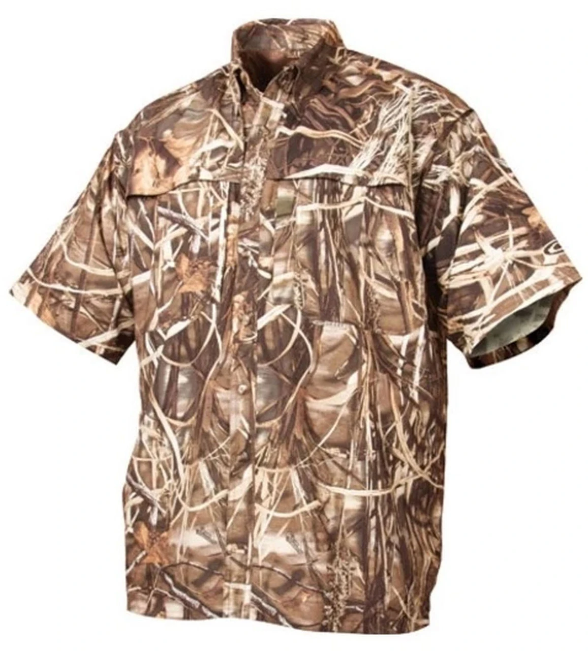 This lightweight Vented Wing Shooters S/S Camo is an awesome hunting shirt with the Drake logo that shows your brand of choice. The quick drying, comfortable, nylon fabric is cool and perfect for any season. Back and front ventilation on the classic design with 7 front buttons make this duck hunting shirt perfect for hunts or a day at the lodge. The Drake Vented Wing Shooters S/S is not just another camo shirt. This shirt is always working to keep you comfortable and cool by wicking and removing moisture in warm weather.   This is the Drake shirt to match to your favorite Drake jacket or Drake pullover.
