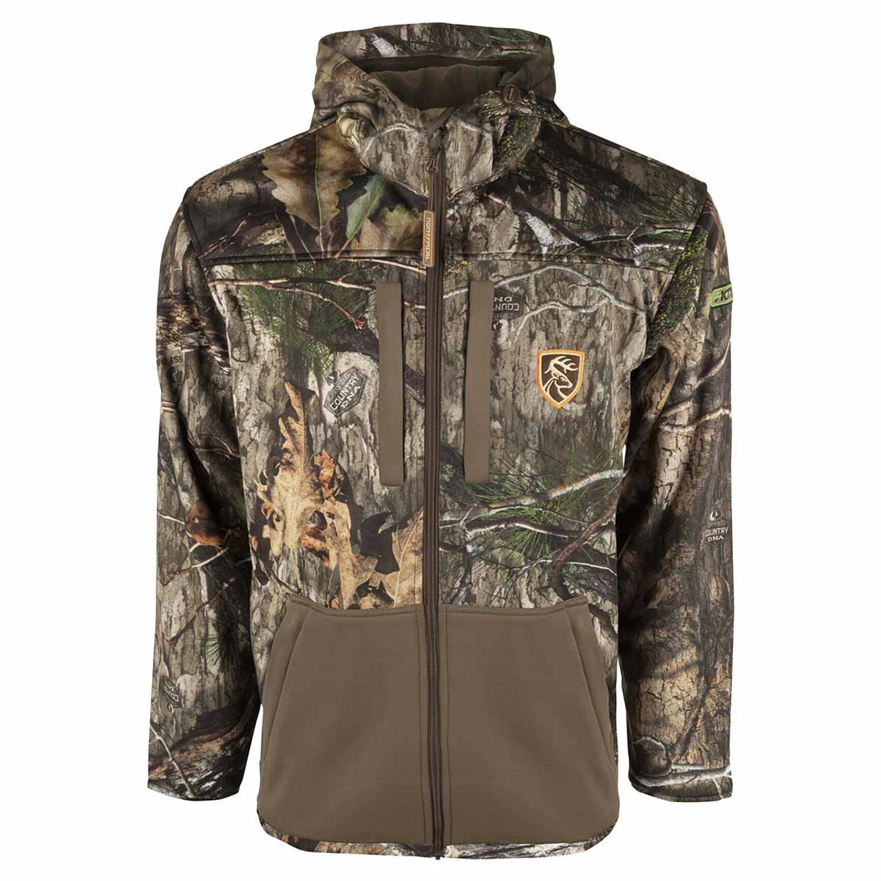 Built for unpredictable weather during the heart of mid-season, the Drake Men’s Non-Typical Endurance Jacket offers comfort and protection in a roomy, comfortable, mid-weight design. Backed by ultralight fleece, the soft-shell fabric is deadly silent and stretches freely as you draw a bow or shoulder a gun. The jacket features a full zip design, adjustable hood, vertical chest pockets, and lower zippered pockets.