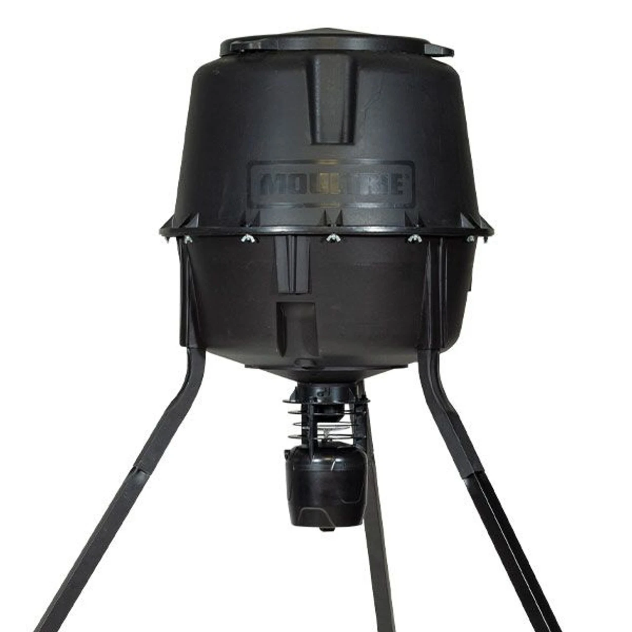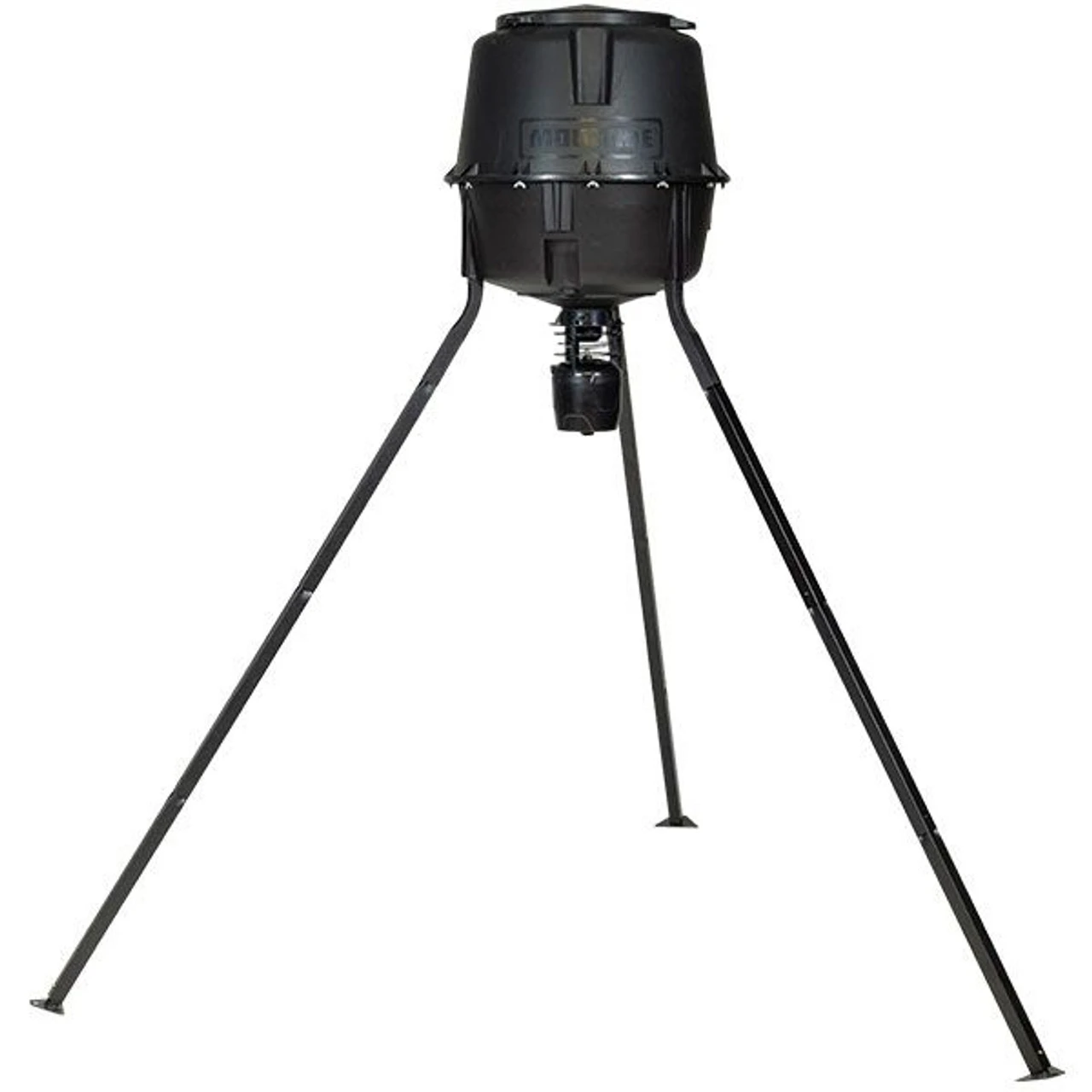 The Deer Feeder Pro II Tripod is one of the most economical options for a reliable wildlife feeder. The tough polymer hopper will hold more than 150 pounds of corn and features the Pro II Hunter Feeder Kit with an adjustable funnel, metal spin plate, ABS plastic housing, feed-level estimator, battery indicator and external power port. The feeder kit will feed up to 6 different times per day from 1 to 20 seconds per feeding. The Deer Feeder Pro II is easy to fill with the fill opening sitting at 5.5 ft. tall.Â