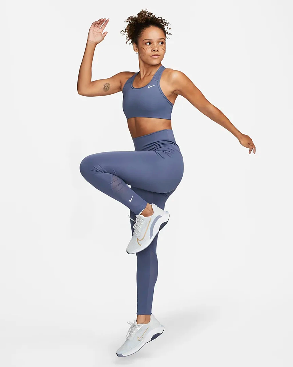 With wide, comfy straps in a classic racerback design, the Nike Swoosh Sports Bra feels snug and secure while you move. Smooth, lightweight fabric wicks sweat to keep you dry, comfortable and focused. For every rep, step and jump—know that you’re supported.