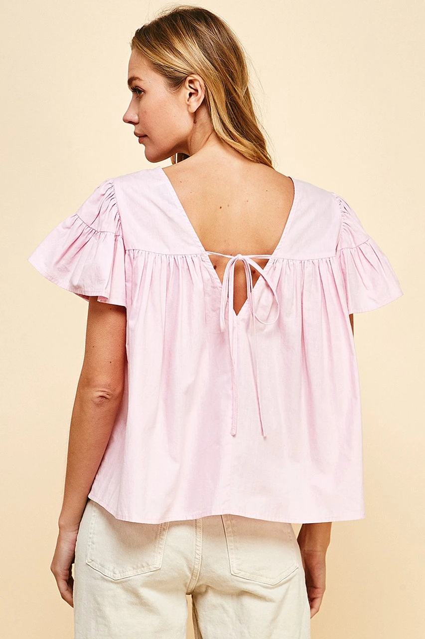 FLUTTER SLEEVES WOVEN TOP OPEN BACK WITH TIE STRAP ROUND NECK