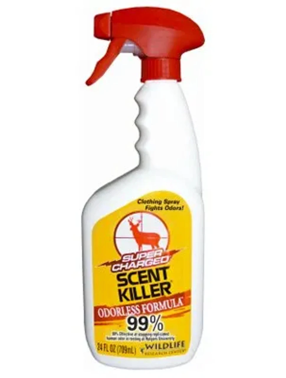Super Charged® Scent Killer® Spray Odorless Formula™ for clothing and boots. Super Charged® Scent Killer® was found to be 99% effective at stopping replicated human odor in testing at Rutgers University.