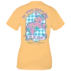 Mint green short sleeve shirt with a softball and bat bordered with the phrase SOFTBALL VIBES ONLY all with a stitched patchwork effect. Simply Southern logo below and on left chest. Pre-shrunk and ring-spun 100% cotton. Unisex sizing.