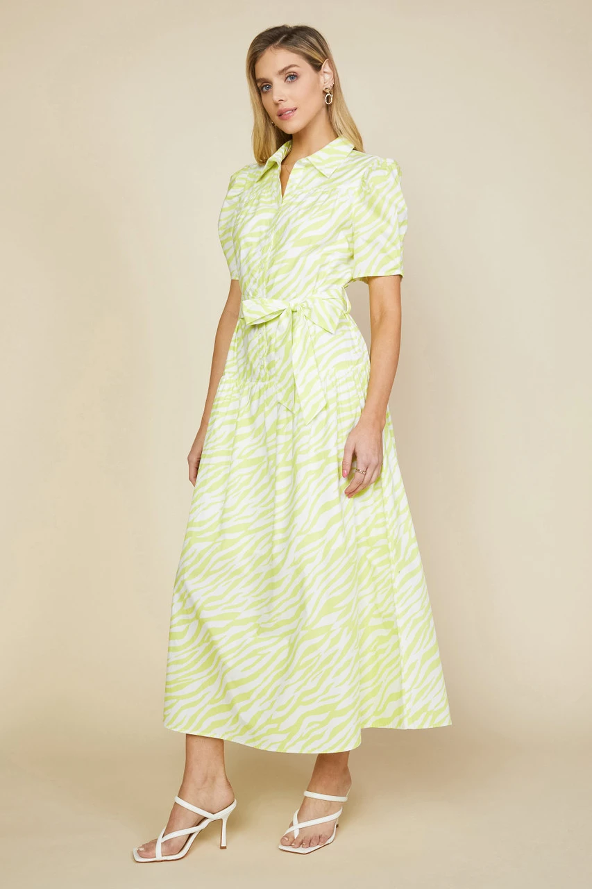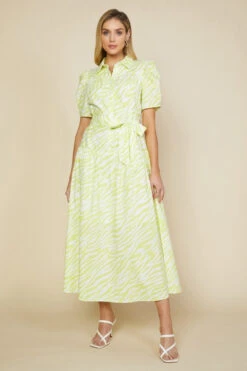 Skies Are Blue Woven Shirt Dress – Lime Yellow