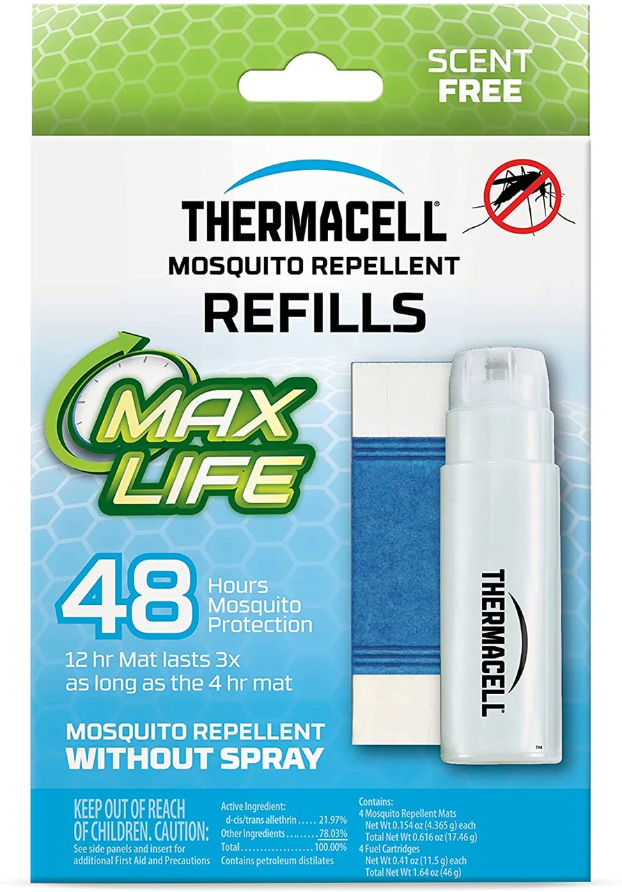 - TURN IT ON… MOSQUITOES GONE: Thermacell Mosquito Repellent creates a 15-foot zone of protection against mosquitos. Max Life Refills are long lasting and compatible with all fuel-powered Thermacell repellers.