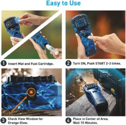 - HEAT-ACTIVATED: No cords or batteries. Powered by a safe and compact 12-hour fuel cartridge (included), repel without smoke, flames, or citronella. Not a messy trap or gimmicky sonic. Independently tested. EPA reviewed for safety & effectiveness.