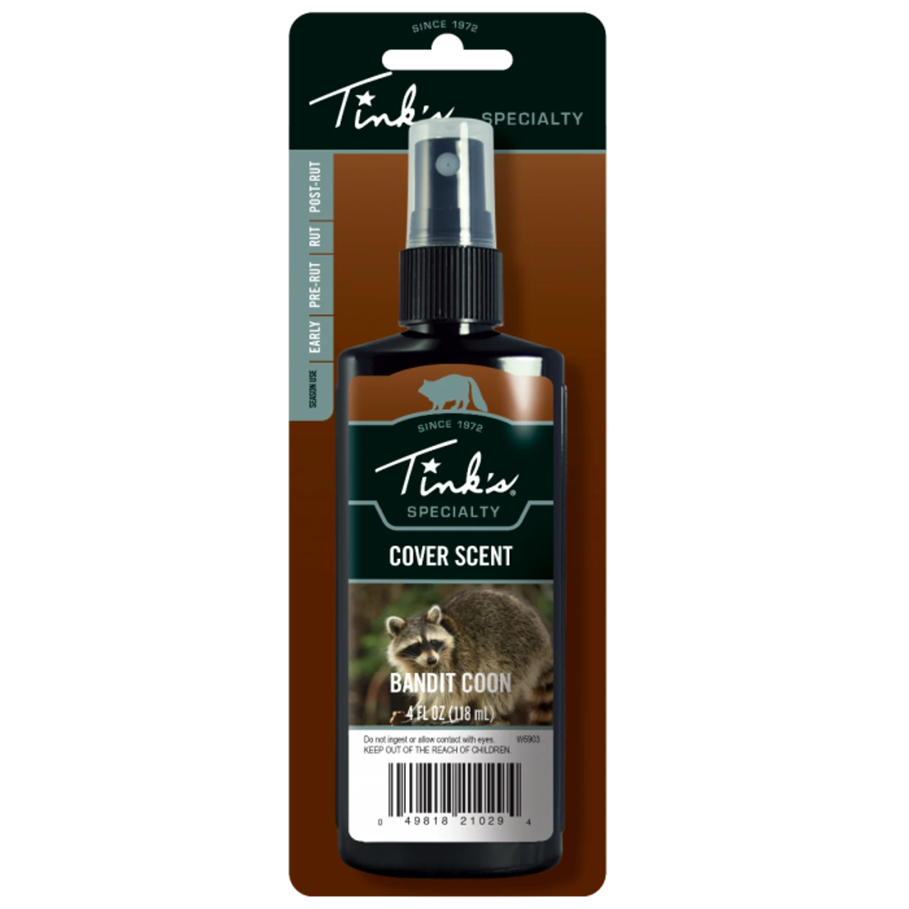 Tink’s® Bandit Coon Power Cover Scent is excellent to use with a Tink’s® Scent Bomb® (sold separately) when hunting from a tree stand. Raccoons feed and frequent the same areas as whitetails. This hunting cover scent is also convenient to use on the ground when stalk hunting.