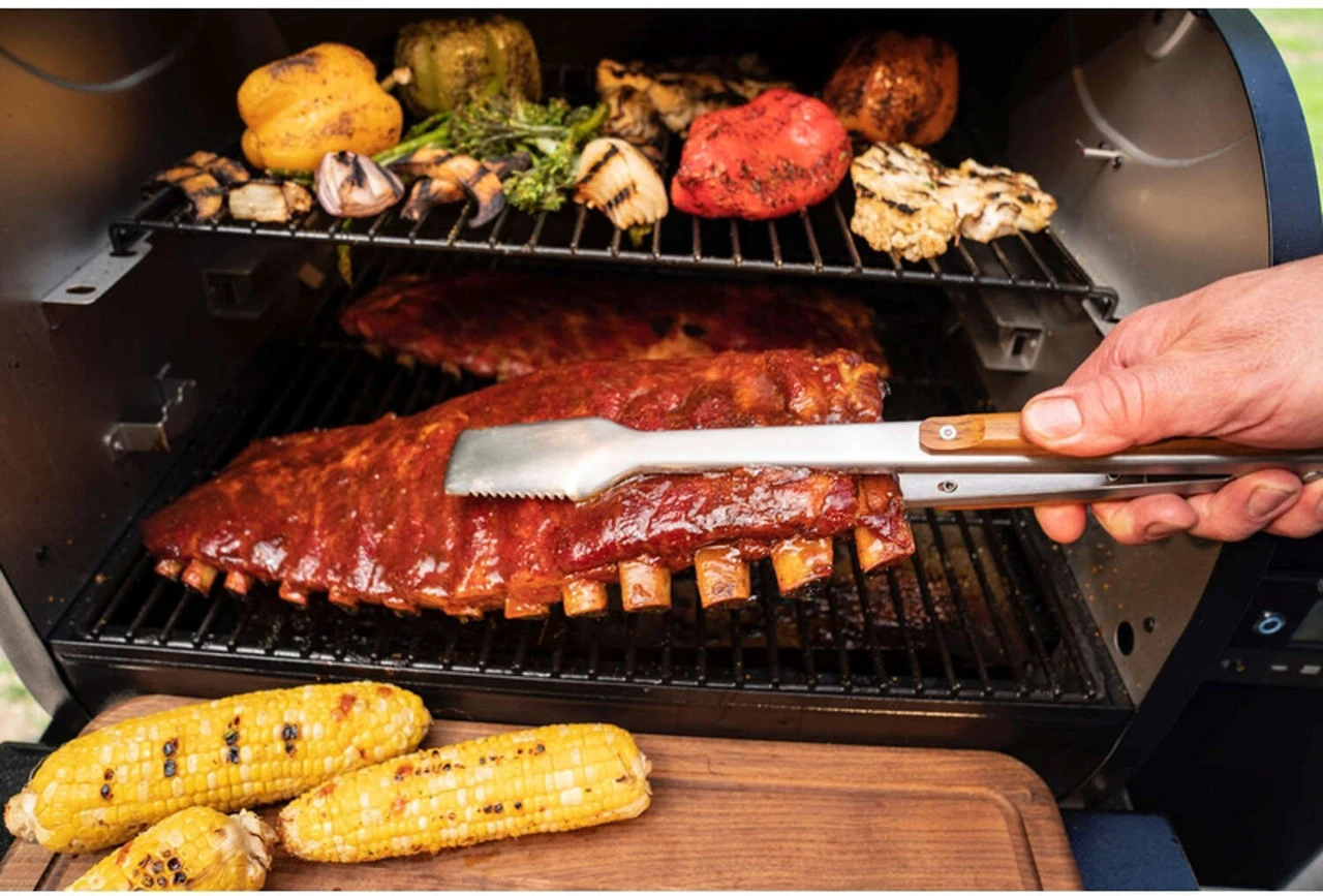 Say goodbye to dropping dogs. Feathering serrated edges for reliable grip, Traeger BBQ Tongs let you flip, rotate and move food with confidence.