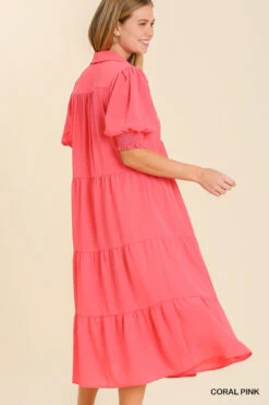 Umgee Collared Tiered Maxi Dress – Coral Pink
