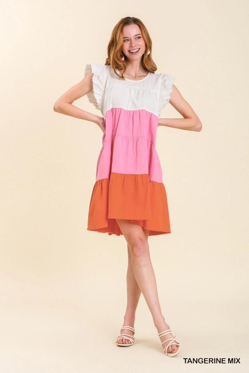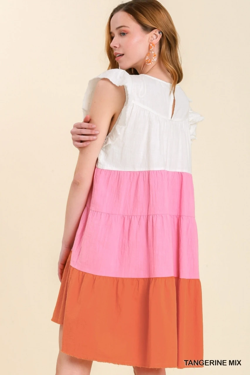 Umgee Color Block Tiered Dress – Tangerine Mix