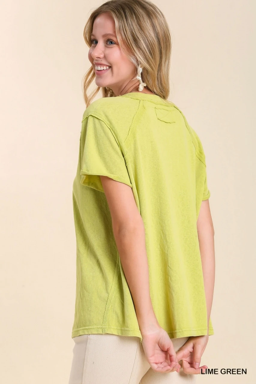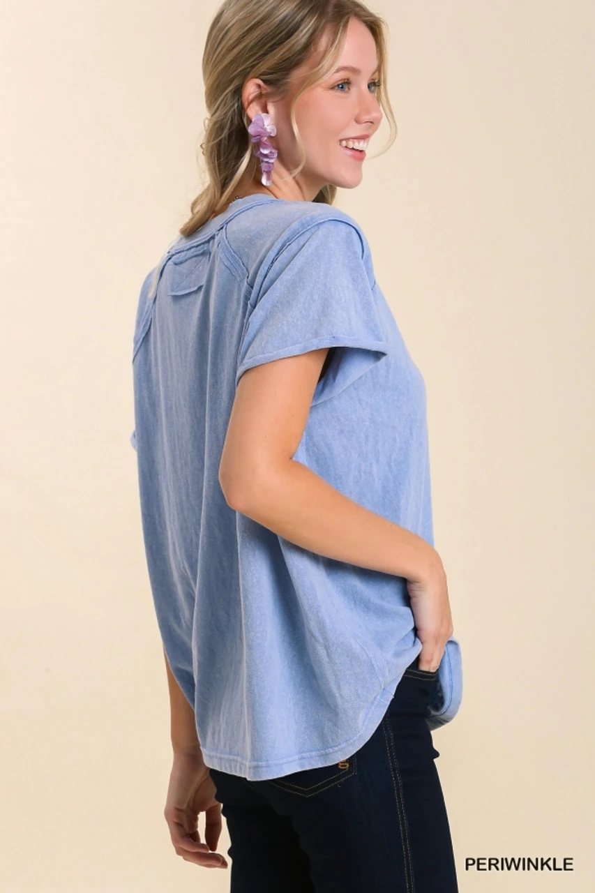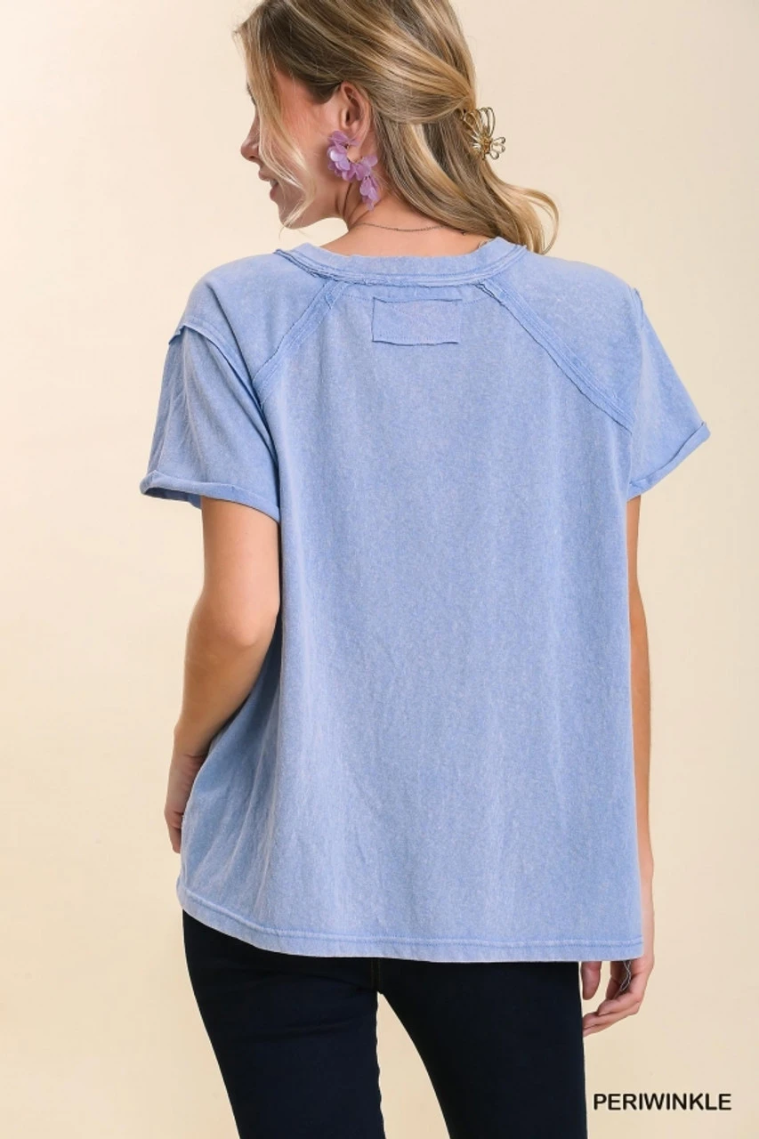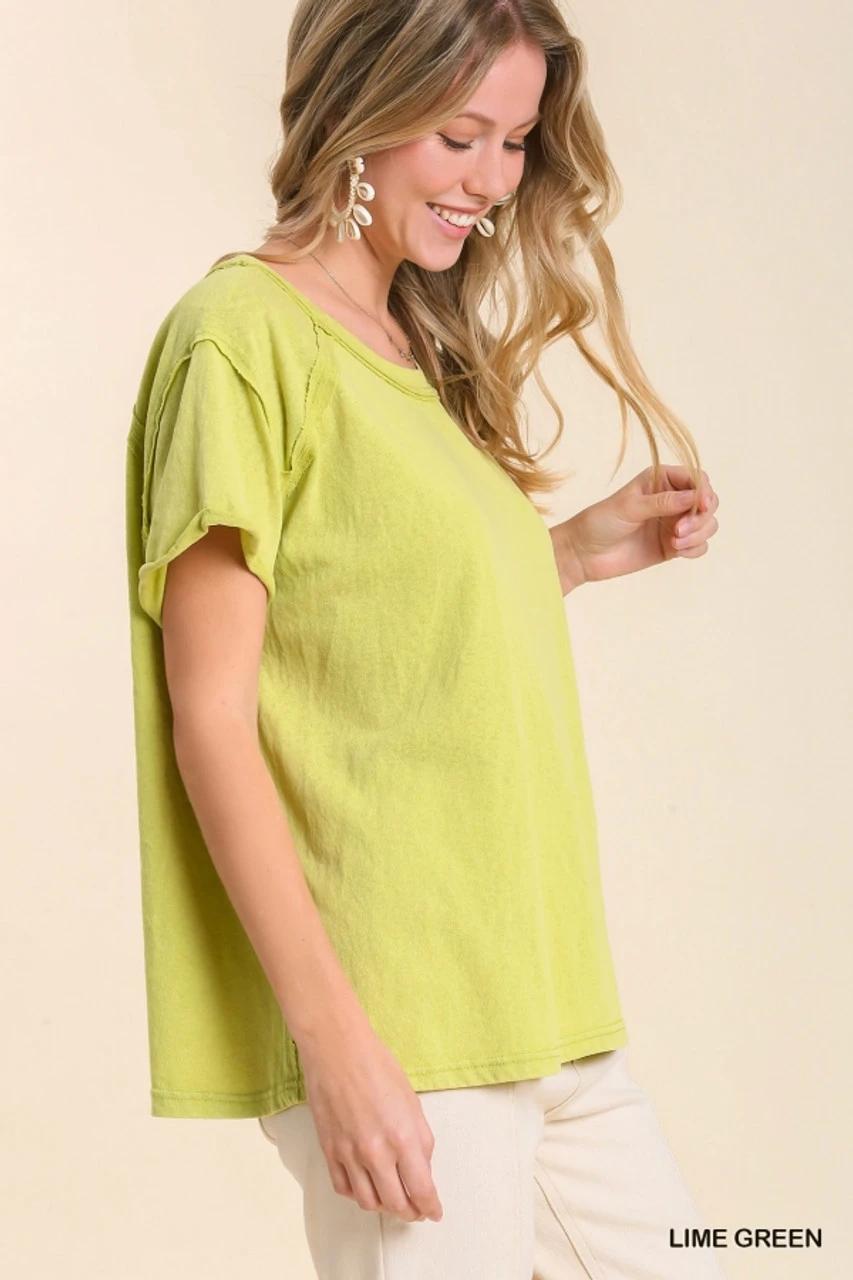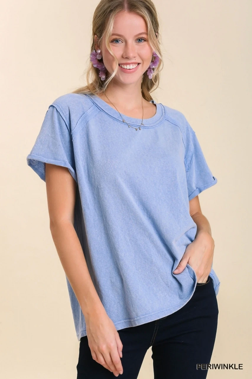 Mineral Washed Round Neck with Rolled Sleeves and Raw Hemline