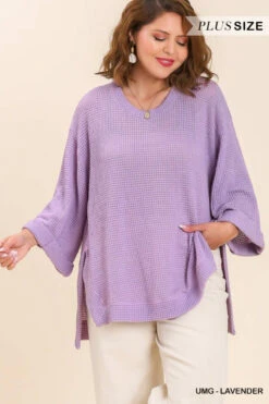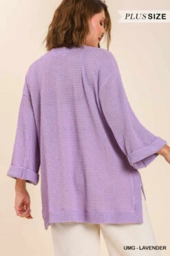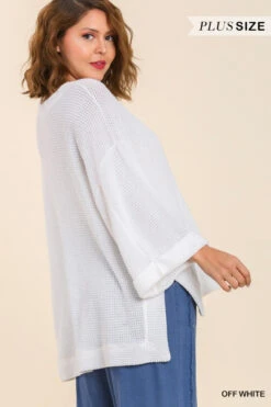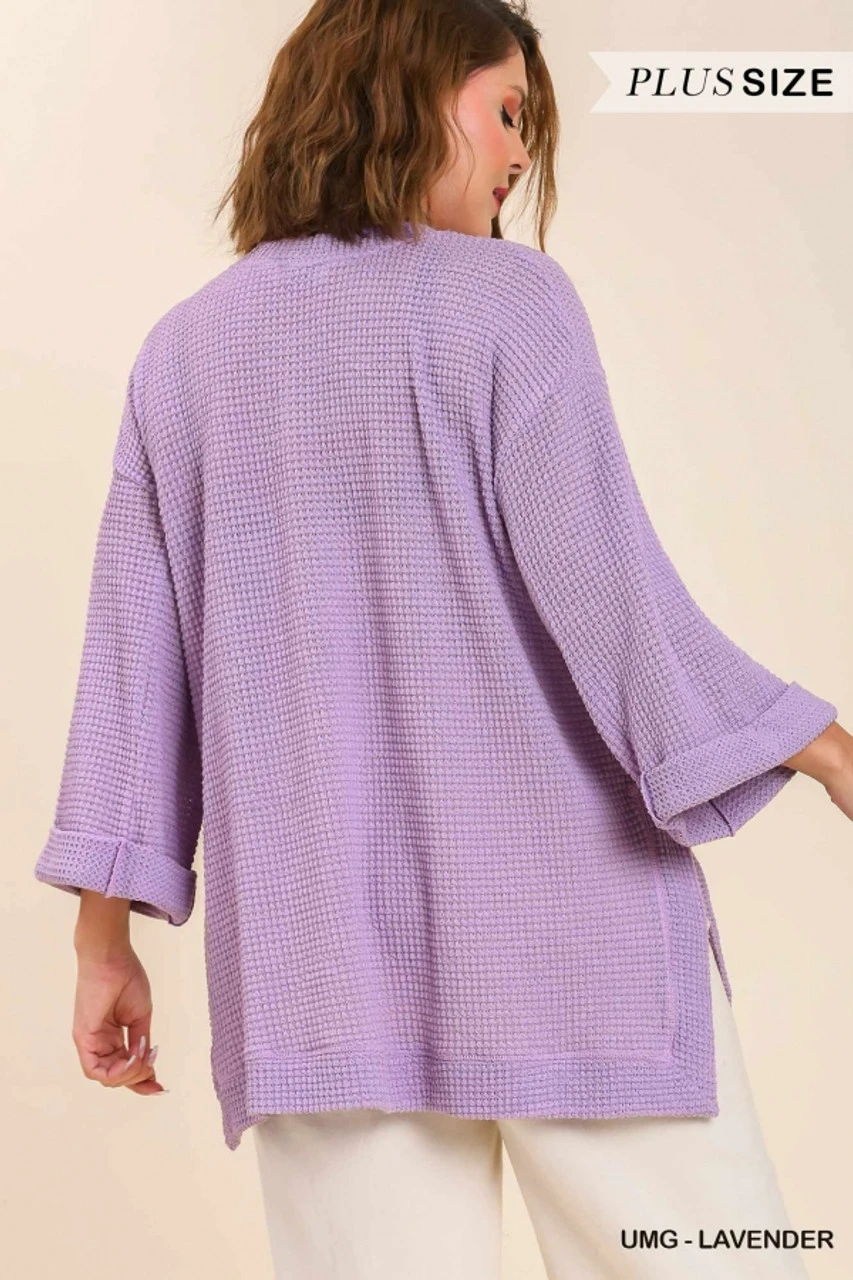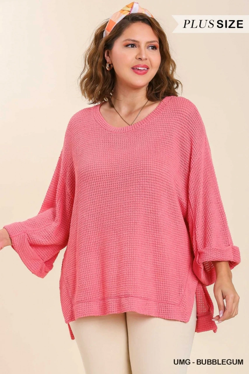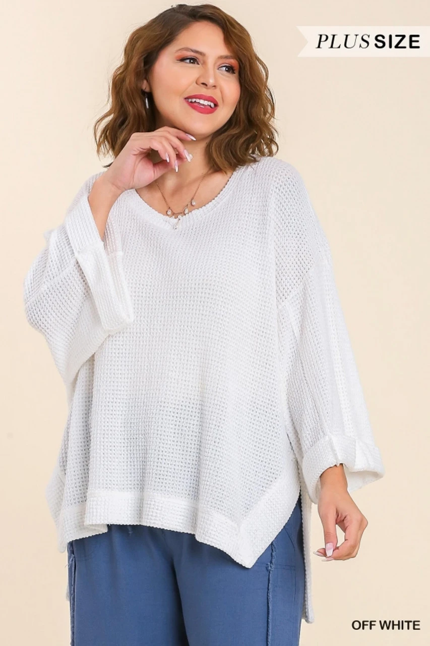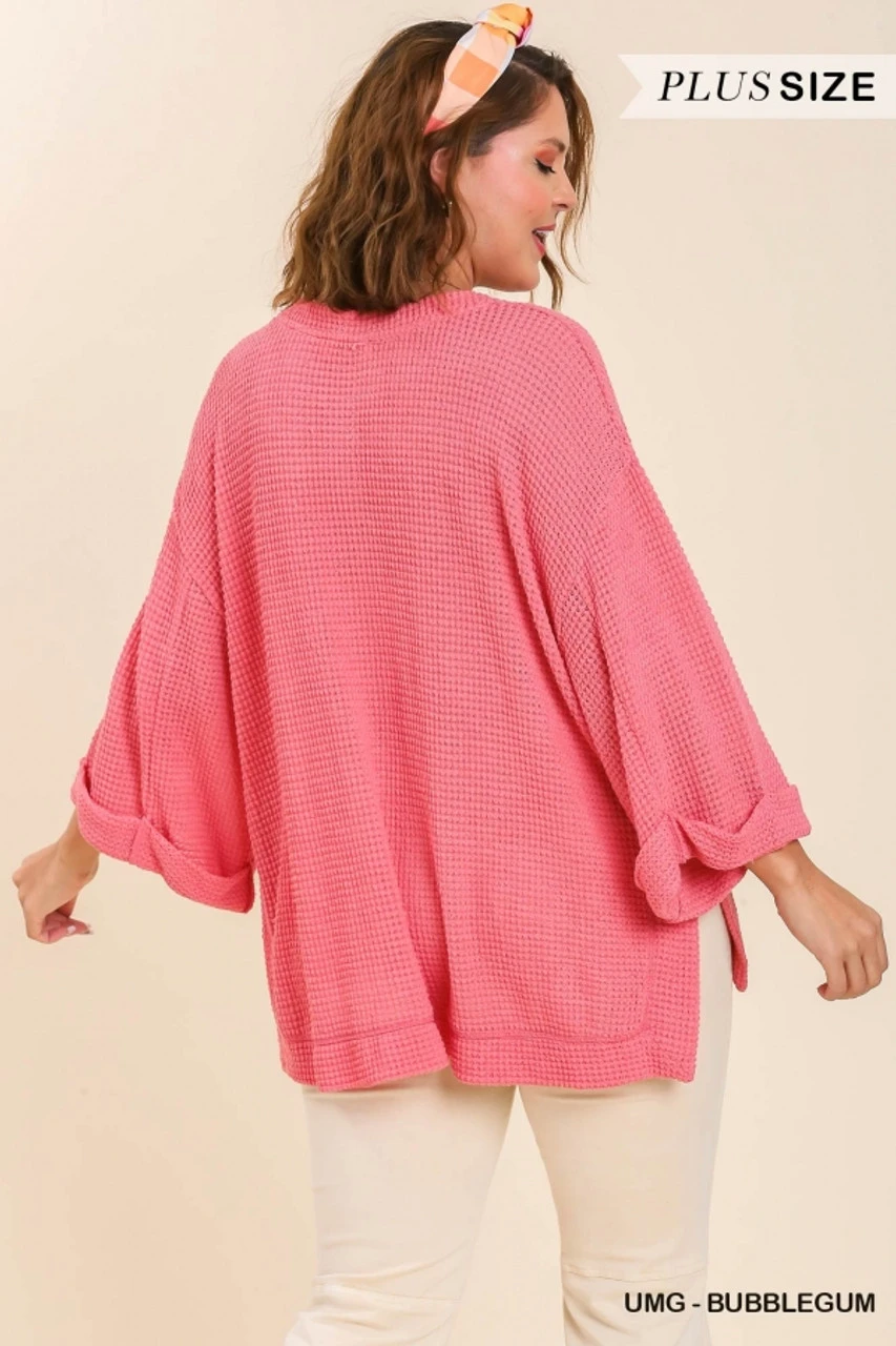 Umgee Plus Size Waffle Knit 3/4 Rolled Sleeve Top