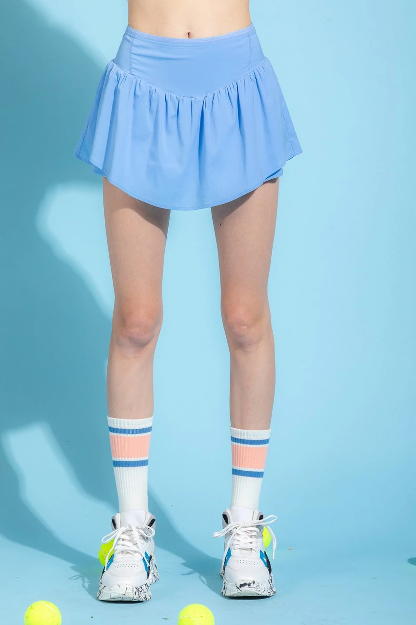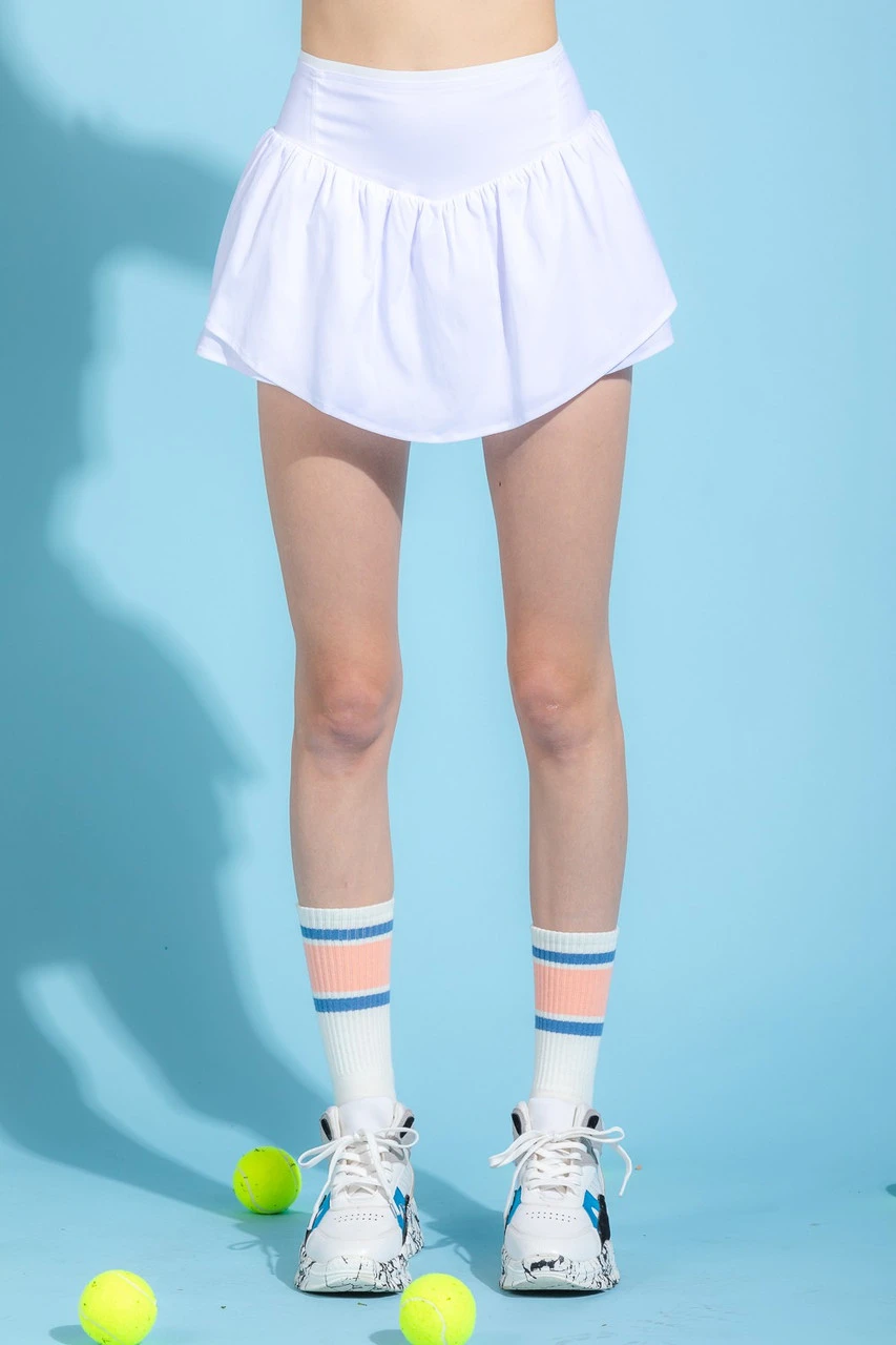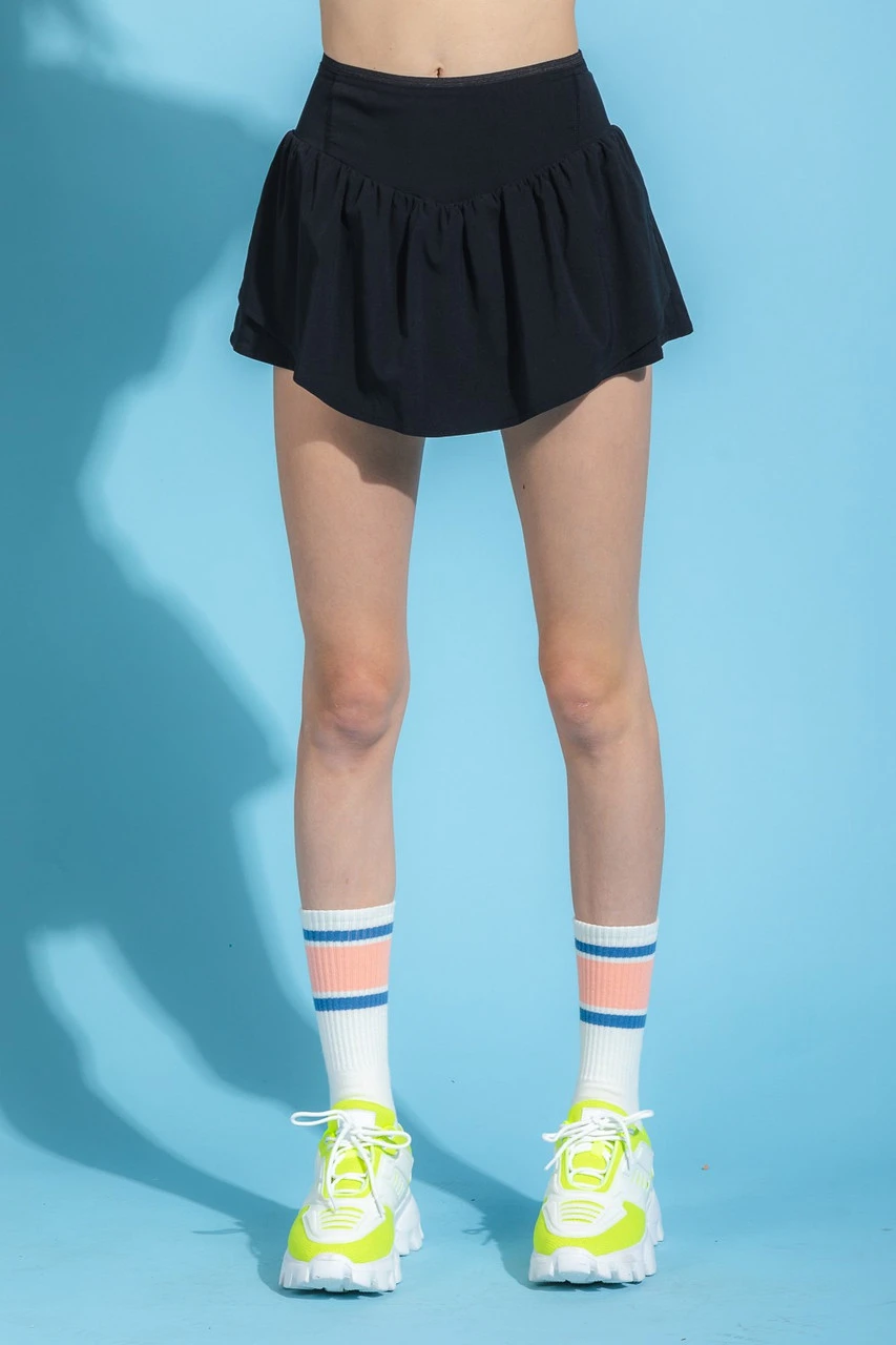 - Skirt out layer activewear shorts - Elastic waist - Pantie lining - High waist